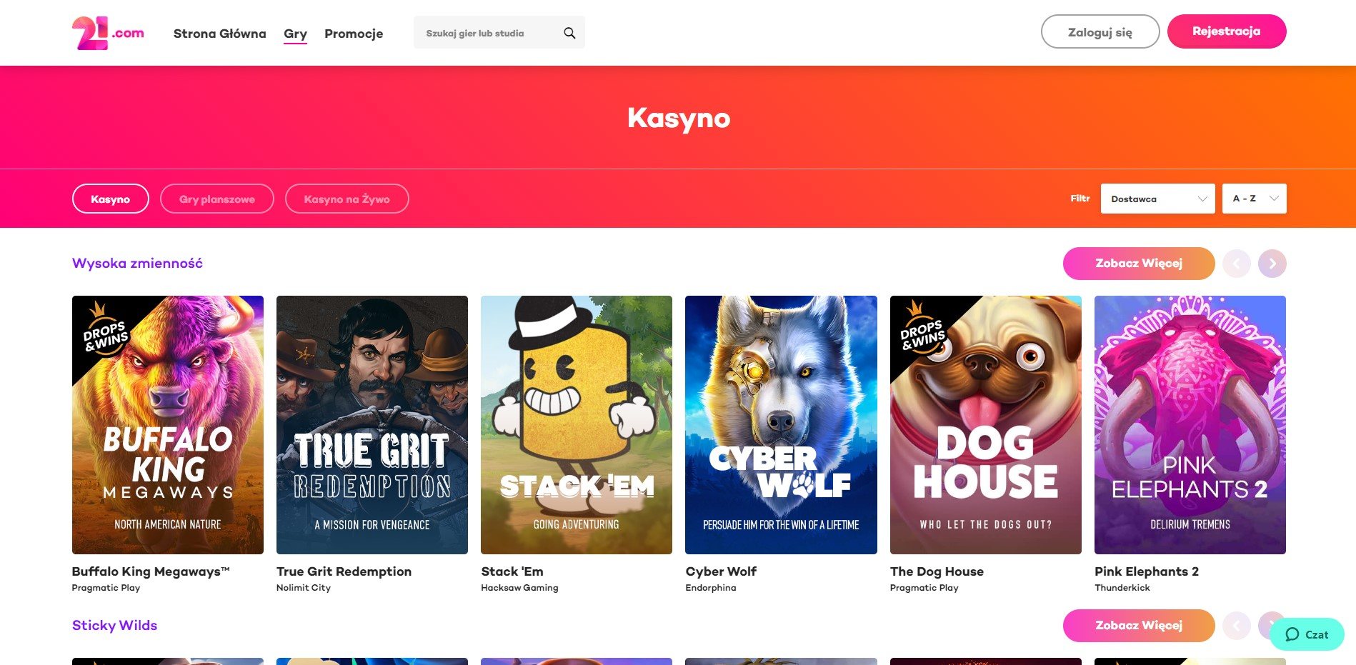 Wybór i oferta gier 21.com